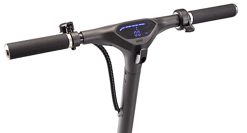 wyświetlacz: na kierownicy LCD, wodoodporny, zsynchronizowany z rozbudowaną dedykowaną aplikacją na Android, pokazuje stan naładowania baterii, prędkość, bieg, podłączenie BT, przebieg, informację o włączonym świetle;