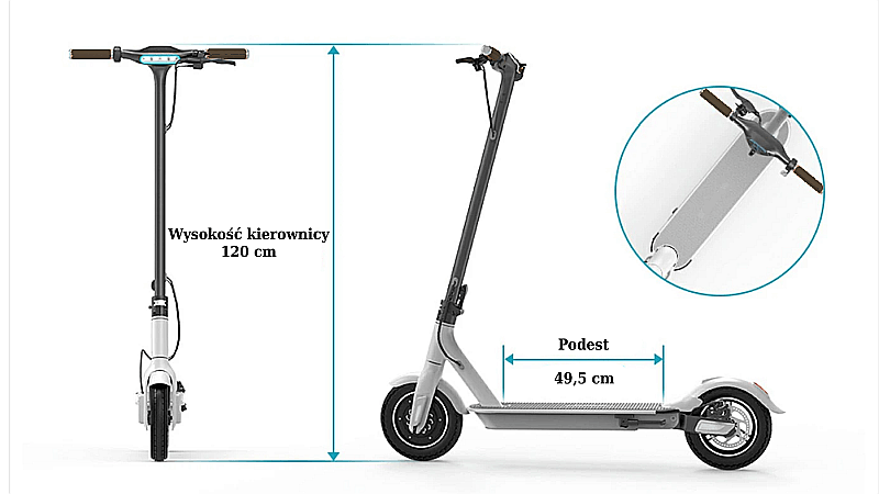 wymiary: 1200x1200 (kompaktowa po złożeniu 550x1200) lekka rama, rozmiar zapewniający komfort, pewne i stabilne prowadzenie dla dorosłych i młodzieży;
